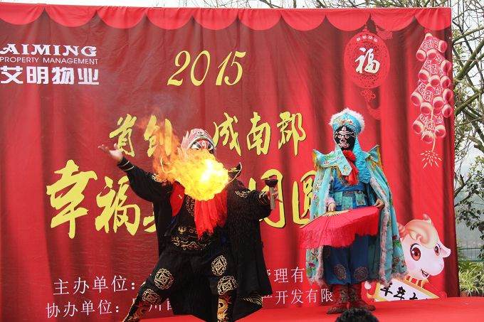 “上菜了!”随着大厨的一声吆喝,业主们纷纷就坐,大家围坐在饭桌前,品尝久违的“大锅菜”。一场别开生面的“幸福美满团圆宴”在大家的欢声笑语中开席了!原来这场特别的坝坝宴是由服务该小区的艾明物业为答谢小区业主们而特地举办的,他们从一周前就开始筹备,而且还精心准备了许多文艺节目为大家助兴。天气虽然寒冷,但业主们的心是火热的,现场不时响起阵阵掌声和喝彩声,大家聚精会神地观看节目,生怕错过了精彩的瞬间!艾明物业女子特勤队的开场舞蹈“铿锵玫瑰”赢得了业主们的热烈掌声;“文艺保安哥”崔成红的古筝表演更是赢了满堂彩,成南郡物业服务中心的员工们给大家带来的“小苹果”等节目,让业主看到了物业人不一样的风采;业主阿姨们表演的广场舞,欢快的乐曲、灵活的身姿,完美地表达了业主们此刻火热的心情!川剧变脸、喷火、二人转、魔术表演、幸运大抽奖等精彩的节目更是一个接着一个,大伙儿一边品尝着美食,一边收获着惊喜。演出间歇平时不怎么见面的业主们也纷纷上台向左邻右舍们道贺新年!