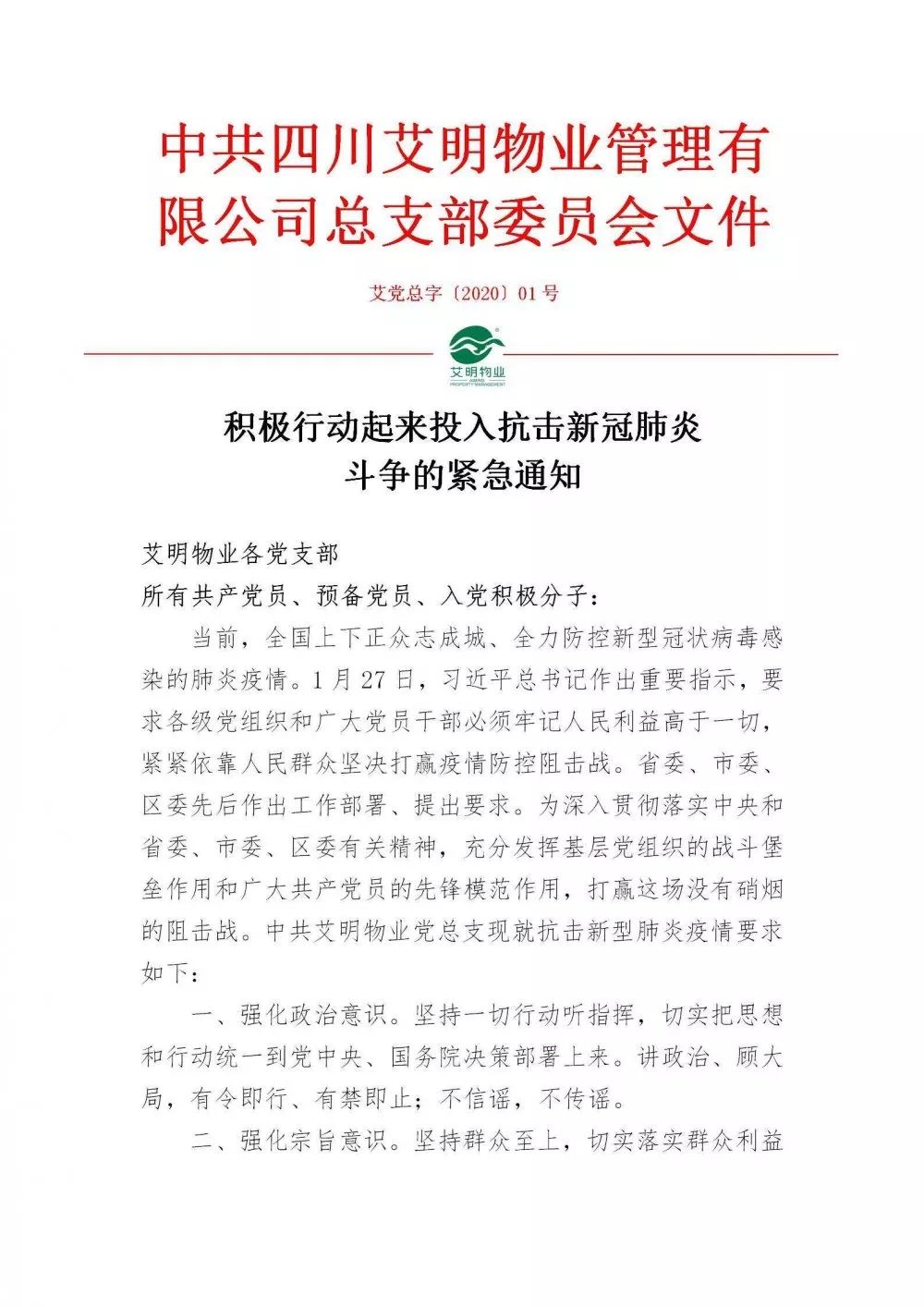 疫情就是命令,防控就是责任!面对新型冠状病毒感染的肺炎疫情不断蔓延,艾明物业党总支高度重视,率先吹响抗议集结号”,号召各支部党员、积极分子主动领岗、冲锋在前!以公司的整体部署为基础,从重点区域消毒到业主生活物资的满足等,党员干部走在了前列。