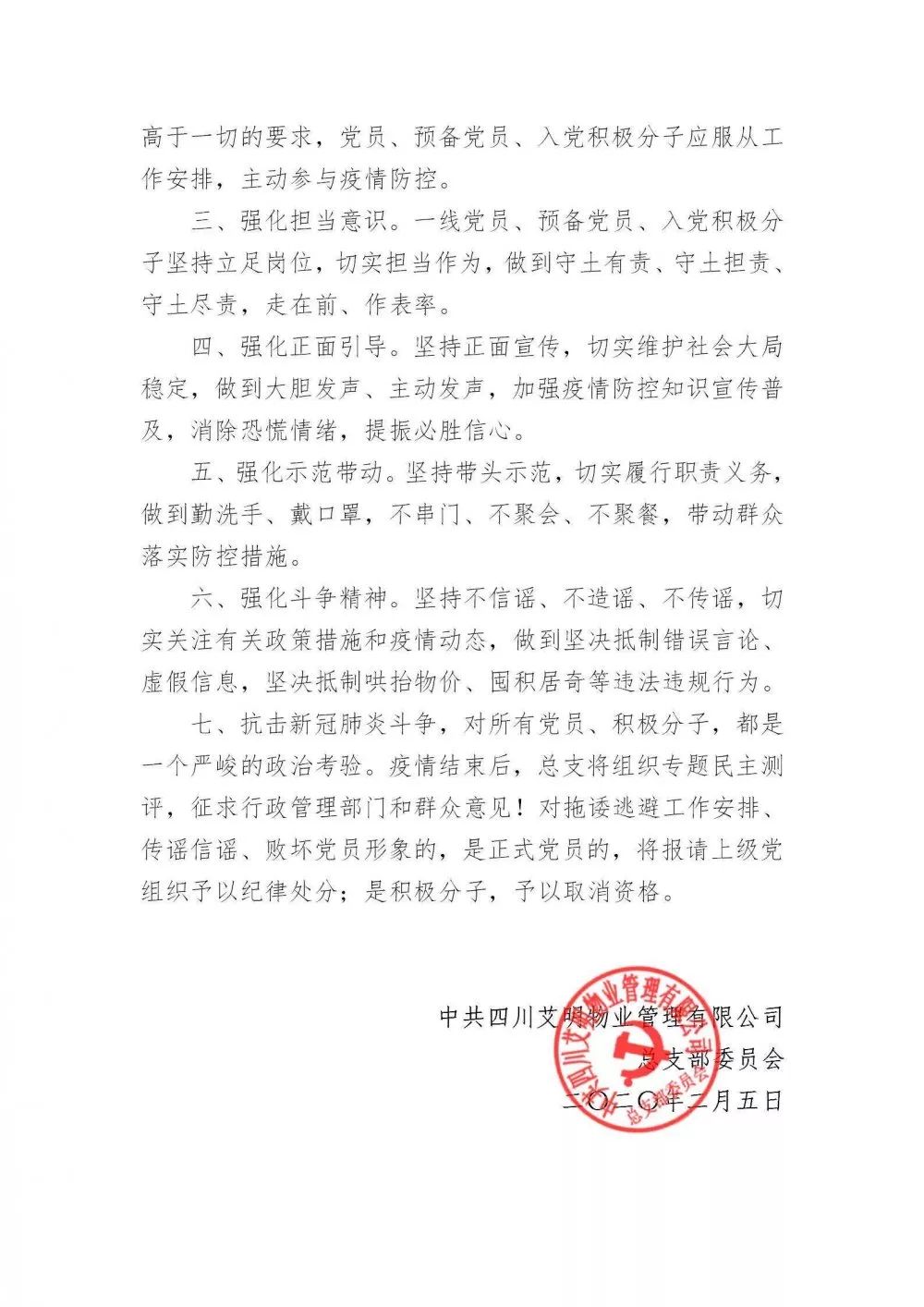 艾明物业泸州分公司总经理兼成都支部书记李红强,放弃春节与家人的团聚以身作则,亲自指挥,在这场疫情防控攻坚战中,用行动诠释责任担当作为,并带头与分公司所有管理人员宣誓“疫情不退,我不退”。