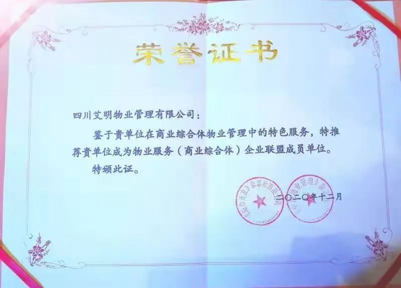 本次会议,公司因商业综合体物业管理中的服务的特色服务,被推荐为物业服务(商业综合体)企业联盟成员单位,并被授予荣誉证书。